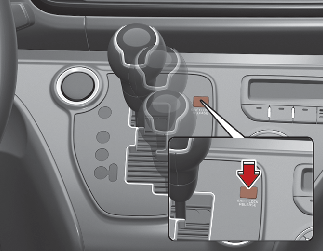 배터리가 방전되었거나 또는 시동 「ON」 상태가 아니면 브레이크 페달을 밟아도 변속 레버가 「P」(주차) 위치에서 「R」(후진) 위치로 조작되지 않습니다. 이때는 변속 레버 앞쪽에 위치한 「SHIFT LOCK RELEASE」 버튼을 누르면서 변속 레버를 움직이면 다른 위치로 조작이 가능합니다.