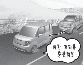차간거리를 충분히 확보하고 스티어링 휠을 천천히 조작하십시오.