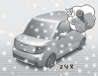 매우 추운 날씨의 주정차 시 주차 브레이크를 걸어 놓으면 브레이크 장치가 얼어 붙어버릴 우려가 있으므로 주차 브레이크는 가능한 풀어 놓고 주차하십시오. 경사 없는 평지에 변속 레버를 「P」(주차) 위치로, 타이어에는 고임목을 받쳐 차가 움직이지 않도록 하십시오.