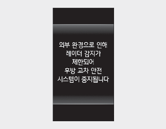 인식 센서 경고문이 표시되지 않거나 경고등이 켜지지 않더라도 후방 교차 충돌방지 보조가 정상적으로 작동하지 않을 수 있습니다.