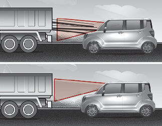전방 차량의 차고가 높거나 적재물이 후면으로 돌출되어 있다면 위험 상황이 발생할 수 있습니다.