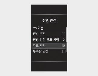 차로 안전 선택을 해제하면 차로 이탈방지 보조의 도움을 받을 수 없습니다. 항상 주의하여 운전하십시오.