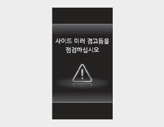 실외 미러(사이드 미러) 경고등에 이상이 있으면 클러스터에 경고문이 일정 시간 표시되며 통합 경고등(
