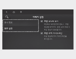 후방 모니터 작동 상태에서 화면 내 설정 버튼(