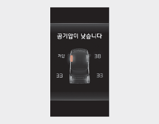 클러스터 화면에 표시되는 공기압은 압력 게이지로 측정한 공기압과 차이가 날 수 있습니다.