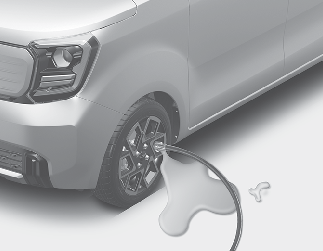 주의실런트(봉합제)를 사용하여 펑크난 타이어를 수리했을 시, 타이어 공기압 감지 센서와 휠에 묻은 실런트(봉합제)를 제거해야 합니다. 자사 직영 서비스센터 또는 서비스협력사에서 점검 및 정비를 받으십시오.
