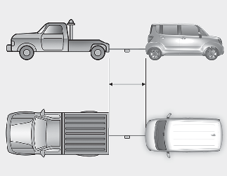 견인 시 피견인 차량의 운전자는 조향 및 브레이크 조작을 위해 반드시 탑승해야 합니다. 운전자 외 인원은 탑승하지 마십시오.