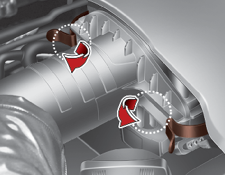 에어클리너 필터 분리 시 에어플로우 센서에 충격을 가하거나 공기 흡입구에 먼지나 오염물질이 들어가지 않도록 주의하십시오.