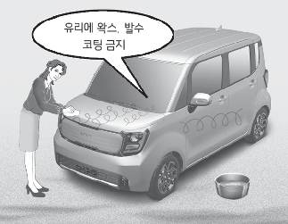 주의앞유리에 왁스가 묻으면 와이퍼의 손상 원인이 될 수 있으므로 주의하십시오.