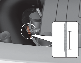 엔진 오일 레벨 게이지를 다시 꽂은 후 뽑으십시오.