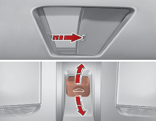 Kun kattoluukun ohjauskytkintä työnnetään taaksepäin, kattoluukku ja häikäisysuoja liukuvat auki.