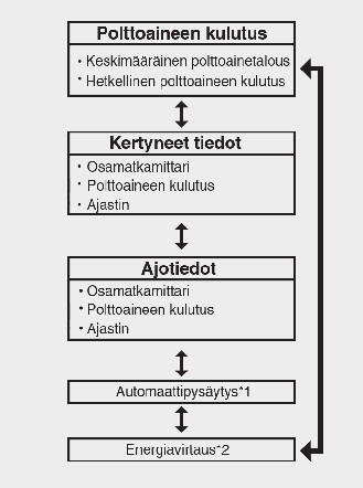 Jos kuljettajan ovi avataan moottorin sammutuksen jälkeen tai moottorin käynnistämisestä kuluu 3 minuuttia, ajotiedot nollataan.
