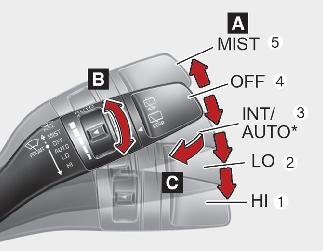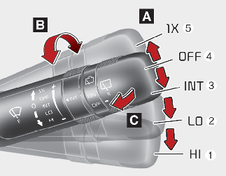 A: Pyyhkimen nopeuden säätö (edessä)