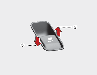 • To open or close a window, press down or pull up the front portion of the corresponding switch to the first detent position (5).