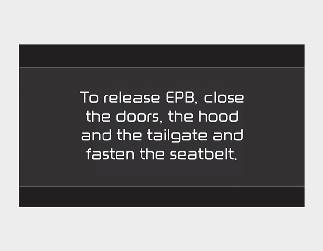 • If you try to drive off depressing the accelerator pedal with the EPB applied, but doesn't release automatically, a warning will sound once and a message will appear.