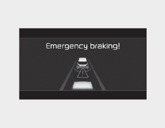 • To warn the driver that emergency braking will be assisted, the ‘Emergency braking’ warning message will appear on the cluster, an audible warning will sound and the steering wheel will vibrate.