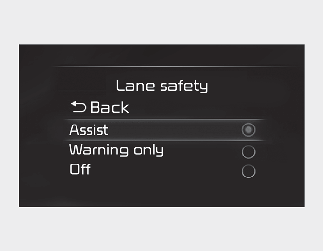 If ‘Off’ is selected, Lane Keeping Assist will turn off. The indicator light (