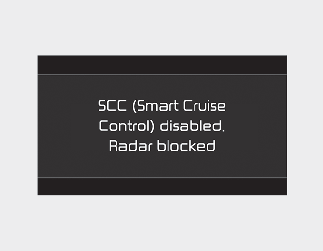 If this occurs, the ‘SCC (Smart Cruise Control) disabled. Radar blocked’ warning message will appear for a certain period of time on the cluster.