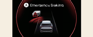 Die Warnmeldung, ein akustisches Warnsignal und das Vibrieren des Lenkrads (ausstattungsabhängig) warnen den Fahrer vor einer Kollision, der von einer Notbremsung unterstützt wird. Der Bremsassistent wird aktiviert und hilft, eine Kollision von Fahrzeug zu vermeiden.