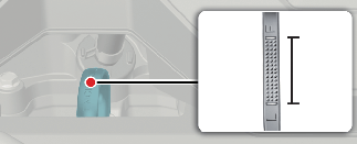 Ziehen Sie den Messstab wieder heraus und prüfen Sie den Füllstand. Prüfen Sie, ob der Ölstand zwischen den Linien F und L liegt. Wenn er unter der L-Linie liegt, füllen Sie genug Öl nach, bis der Ölstand die F-Linie erreicht.