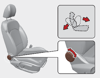 Поясничную опору можно регулировать путем нажатия на ее переключатель сбоку от сиденья.