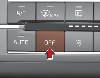 Нажмите на кнопку выключения, чтобы отключить переднюю систему климат-контроля. Однако вы можете по-прежнему работать с кнопками выбора режима и забора воздуха, пока выключатель зажигания находится в положении «ON» (Вкл.).