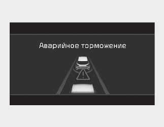 Чтобы предупредить водителя о применении торможения, на приборную панель выводится предупреждающее сообщение Emergency Braking (Аварийное торможение). Одновременно звучит звуковое предупреждение, и рулевое колесо начинает вибрировать.