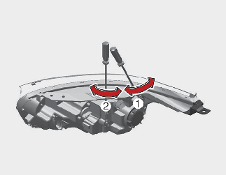 Чтобы увеличить или уменьшить угол наклона передней противотуманной фары, поверните отвертку по часовой или против часовой стрелки.
