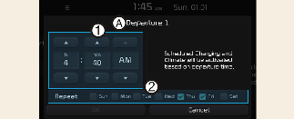 Valitse Sähköauto → Seuraava lähtö. Voit asettaa päivän ja ajan, jolloin akkua ladataan, sisäilmaston lämpötilahallinnan ja muita toimintoja.