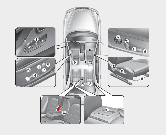 Vezető üléspozíció memória (felszereltségtől függően, elektromos üléshez)