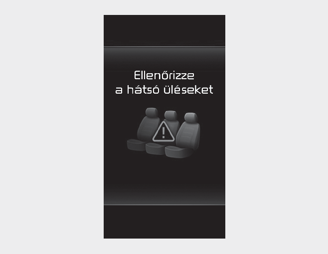 Ha a hátsó ajtó nyitását és zárását követően kinyitja az elülső ajtót és leállítja a motort, a "Check rear seats" (Ellenőrizze a hátsó üléseket) figyelmeztető üzenet jelenik meg a műszerfalon.
