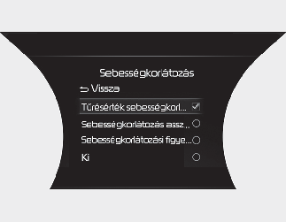 Ha az 'Off' (KI) van kiválasztva, az Intelligens sebességkorlátozó segéd ki van kapcsolva.