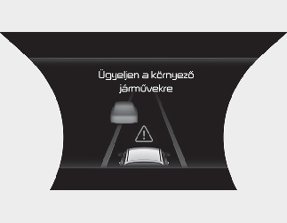 Az alábbi helyzetben az 'Ügyeljen az Ön körül lévő járművekre' figyelmeztető üzenet megjelenik a műszercsoporton, a rendszer pedig hangjelzéssel figyelmezteti a vezetőt az útviszonyokra.