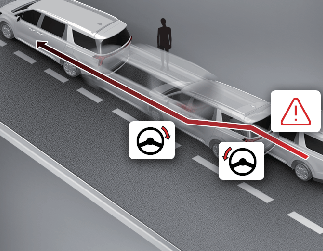 La fonction d'assistance aux manœuvres d’évitement permet d'éviter une collision avec un véhicule, un piéton, un cycliste ou un engin à deux roues motorisées se trouvant devant la voiture dans la même voie. Lorsqu’un risque de collision est détecté, la fonction d’assistance aux manœuvres d’évitement alerte le conducteur et, l'assiste dans la direction s'il tourne le volant.