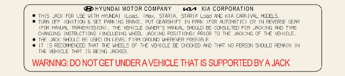 * L'étiquette du cric de votre véhicule peut différer de celle présentée dans l'illustration. Pour obtenir des spécifications détaillées, reportez-vous à l'étiquette de votre cric.