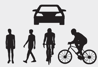 Fodgængeren eller cyklisten foran bevæger sig på tværs af kørselsretningen