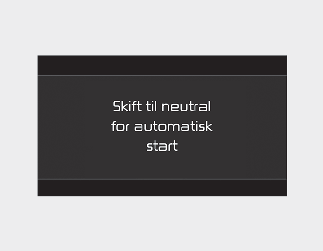 Start motoren ved at træde koblingen og bremsen ned, og tryk efter på knappen ENGINE START/STOP, mens gearstangen befinder sig i stillingen N (Neutral).