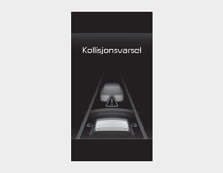 Hvis du velger "Bare advarsler", aktiveres assistansesystemet for unngåelse av frontkollisjon og produserer bare advarselsalarmer i henhold til kollisjonsrisikonivået. Du bør kontrollere bremsene direkte, fordi assistansesystemet for unngåelse av frontkollisjon ikke kontrollerer bremsene.