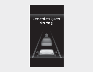 Når kjøretøyet foran kjører ut fra en stopp, vil funksjonen Kjørevarsel for bil foran informere føreren ved å vise 'Bil foran kjører bort' på instrumentpanelet, og det høres et lydvarsel.