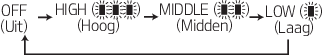 Telkens als u op de hendels/schakelaars drukt, verandert de temperatuurinstelling voor de stoel als volgt: