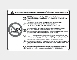 Etiqueta de advertencia del airbag delantero del acompañante para el sistema de sujeción para niños
