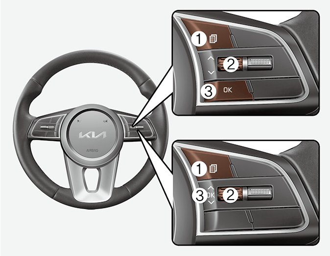 Los modos de la pantalla LCD pueden cambiarse usando los botones de control en el volante.