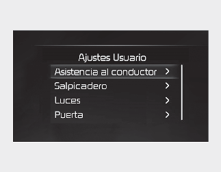 Para cambiar la configuración de la asistencia al conductor, pulse el botón OK (aceptar) en el volante durante más de 1 segundo cuando se muestre el modo Asistencia al conductor.