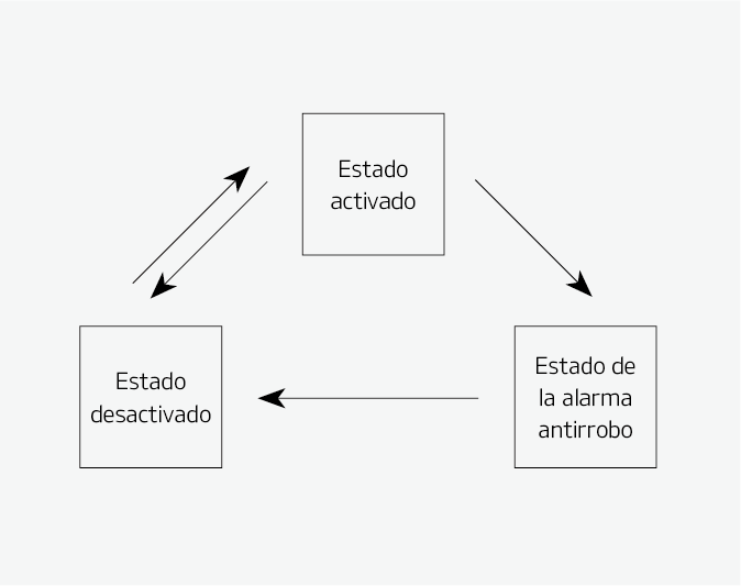 El sistema de alarma antirrobo pasa a la etapa Armado después de 30 segundos desde que las puertas se bloquean con un interruptor en la manilla de la puerta exterior/un botón de bloqueo en la llave.