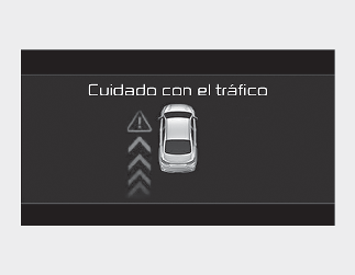Si se detecta un vehículo que se aproxima desde atrás en el momento de abrir una puerta, aparecerá el mensaje de advertencia "Watch for traffic" (Cuidado con el tráfico) en el tablero, la luz de advertencia se encenderá en el espejo retrovisor exterior y se emitirá un sonido de advertencia.