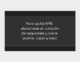 Si intenta conducir pisando el pedal del acelerador con el EPB accionado, pero no se libera automáticamente, se emitirá una advertencia una vez y aparecerá un mensaje.