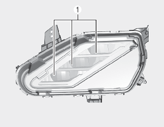 Si la luz antiniebla delantera (LED) (1) no funciona, lleve el vehículo a un taller profesional para que lo comprueben. Kia recomienda visitar un centro de servicio/distribuidor Kia autorizado. Las luces LED no se pueden reemplazar como una sola unidad, porque constituyen una unidad integrada. Las luces LED se deben reemplazar con la unidad. Un técnico cualificado debe comprobar o reparar la luz antiniebla delantera (LED), ya que se podrían dañar las piezas relacionadas del vehículo.