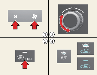Außenluft (Frischluft) und die Klimaanlage werden automatisch gewählt.