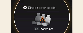 Wenn Sie das Fahrzeug ausstellen und die Fahrertür öffnen, nachdem die hintere Tür bzw. die Heckklappe geöffnet und geschlossen wurde, erscheint die Warnmeldung „Check rear seats“ (Rücksitze prüfen) auf dem Kombiinstrument.