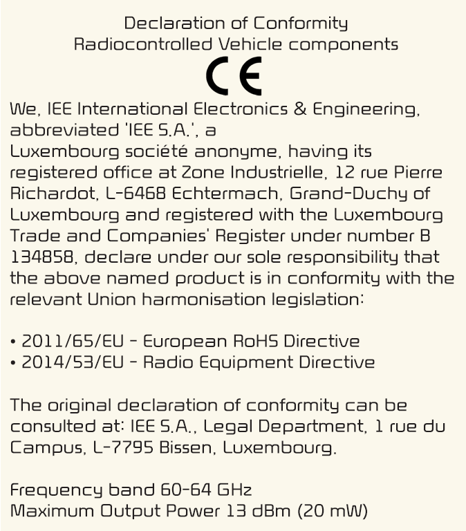 Die HF-Komponenten (Rücksitzalarm-Radarsensor) erfüllen folgende Forderungen: